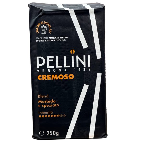 Pellini Cremoso 250 г — мелена кава для moka і фільтра, Італія, карамельно-горіховий смак