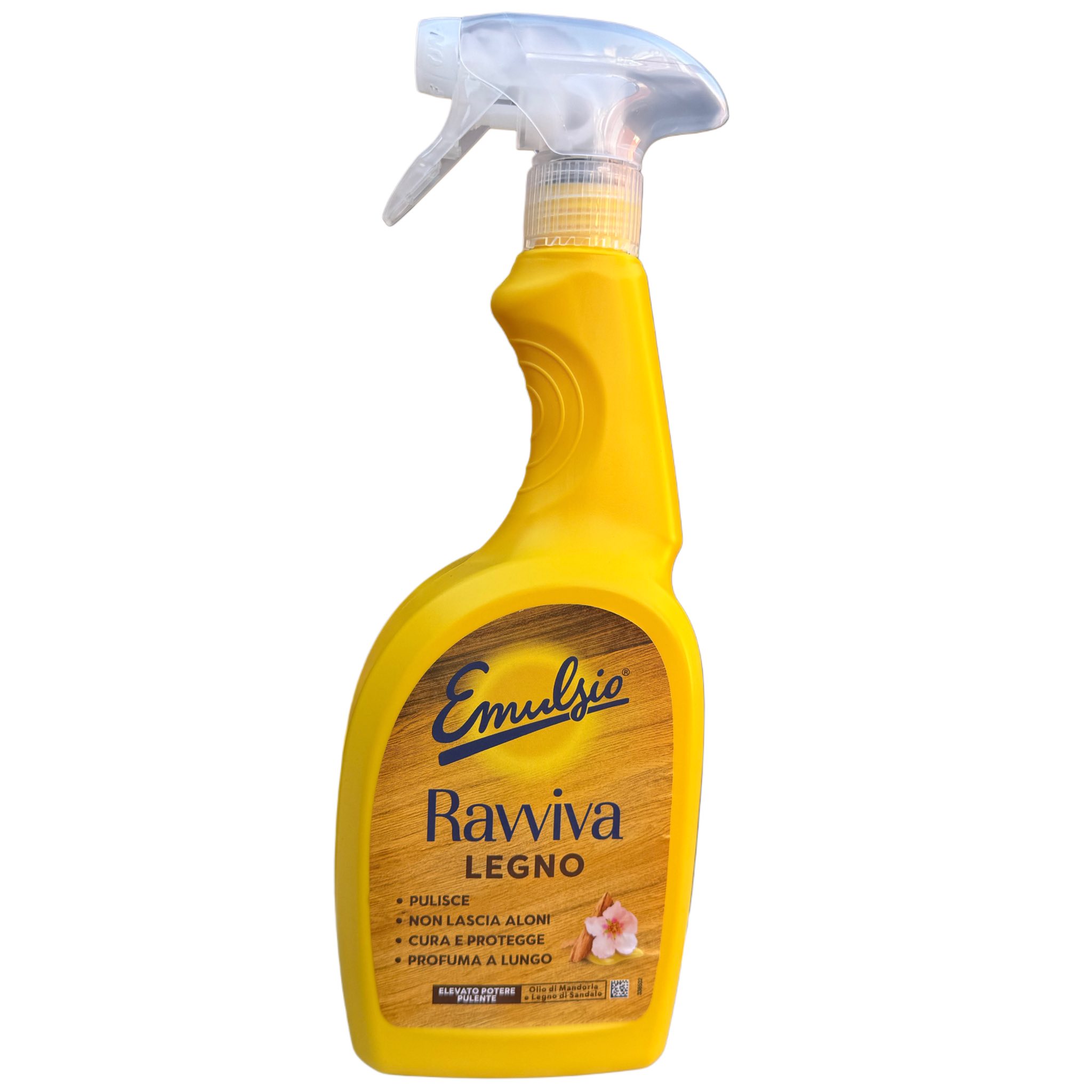 Emulsio Ravviva Legno — спеціальний засіб для очищення, догляду та захисту дерев’яних поверхонь. Завдяки формулі з олією мигдалю та сандалу ефективно очищає, живить дерево та підкреслює його природну текстуру.